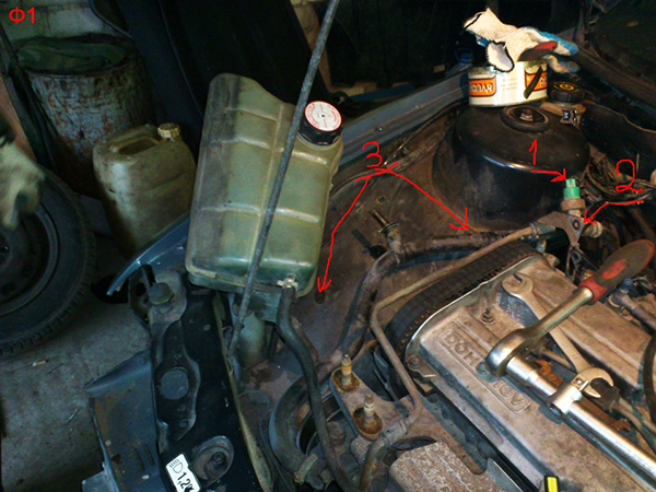 - Снимите расширительный бачок и отклоните его в сторону.