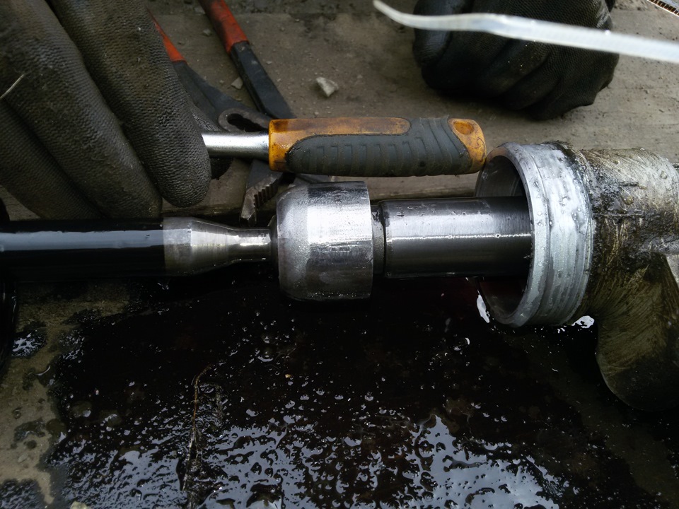 После того как открутили цетрующую гайку снимаем саму рейку. Рейка у меня снялась с двумя сальниками, поэтому и бежала, один сальник вставляется в корпус рейки, второй можно оставить на рейке и зажать центрирующей гайкой.