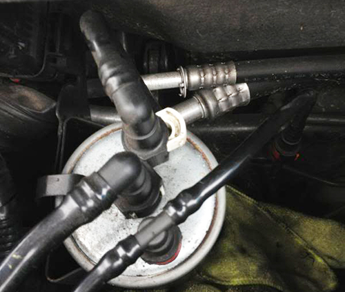 1. Как и всегда при замене топливных фильтров, первым делом сбрасываем избыточное давление в топливной системе. Для этого достаньте в блоке предохранителей предохранитель топливного насоса, затем заведите мотор и дайте ему поработать до тех пор, пока он сам не заглохнет. Когда мотор заглох, попытайтесь снова его завести, если безрезультатно — топлива в топливопровод нет, а значит можно приступать к замене фильтра тонкой очистки.
