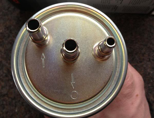 10. После наполнения фильтра, аккуратно установите его на место. Оденьте топливные шланги на места, следите за тем, чтобы не перепутать шланги местами.